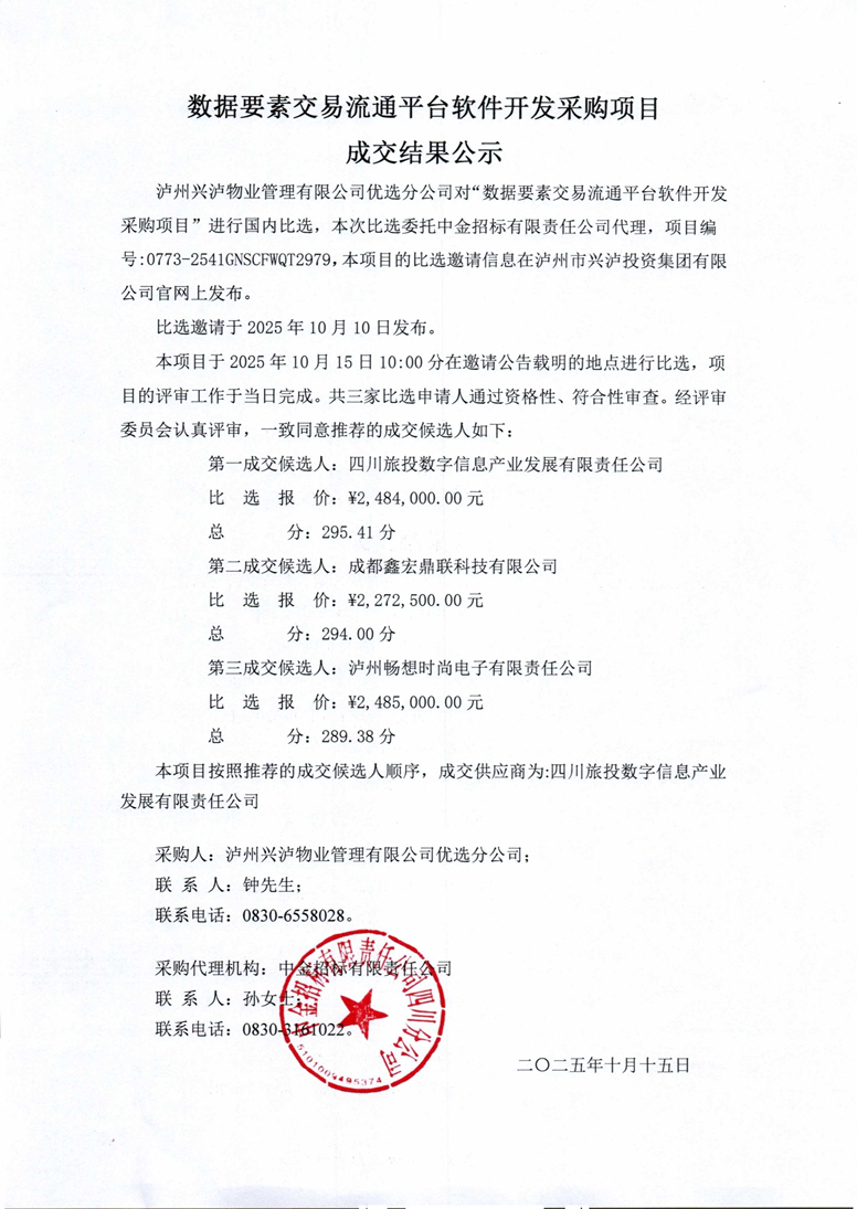 數據要素交易流通平臺軟件開發采購項目成交結果公示